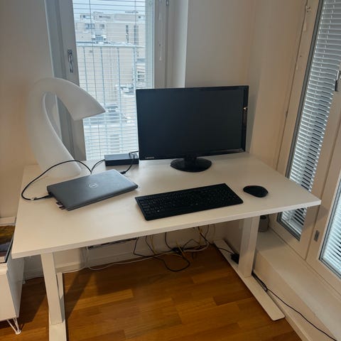 Myydään erittäin hyväkuntoinen säädettävä työpöytä.