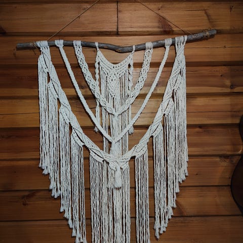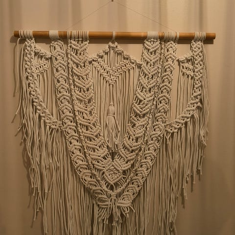 Makramee seinäkoriste. Luonnonvalkoinen.