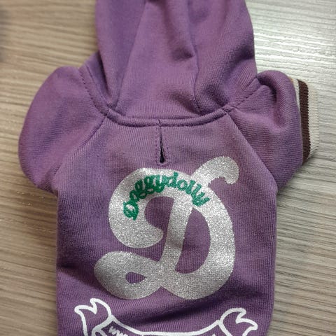 Toisessa Kuvassa, samankokoinen huppari Brasilianterrieri pennun päällä jolle tuolloin vielä aavistuksen iso.