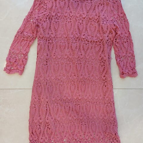 Uusi, käyttämätön (laput paikallaan) Zazabellan Dazzling juhlamekko. Polvipitunen, rosen värinen, ohuet olkaimet, nyörit ja vetoketju takana, materiaalina sifonki ja koko 40. Tähän yhteensopiva hartiahuivi.