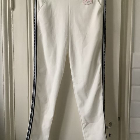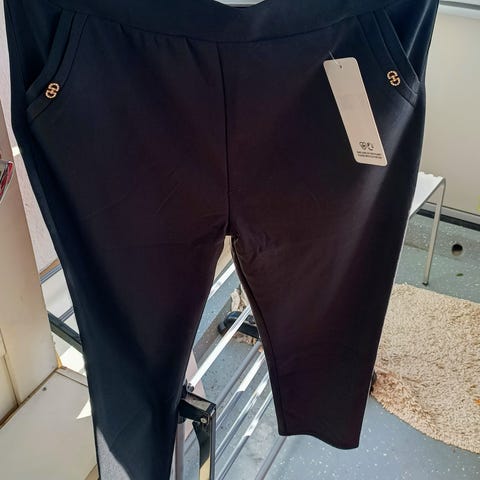 Kuin uudet . Vetoketjut taskuissa , kuminauha vyötärö , siistit suorat housut .Hinta 15 euroa hinta nyt 10 euroa