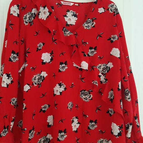 Paita jossa printti halkeillut, muuten ok kunnossa. Hajusteeton pesu ja kissatalous.