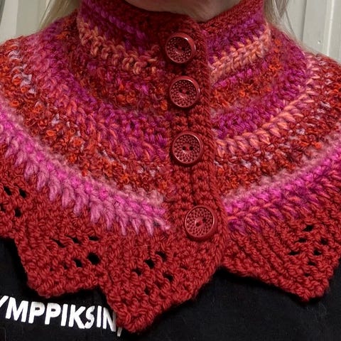 Laadukaasta villalangasta kudottu kauluri ( ei kutise) koko m-l. Hintaan 16€ sisältää posti.k Nouto tai postitus