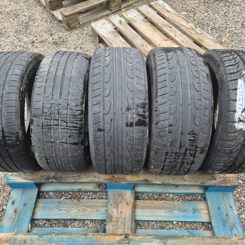 3 + 2 kpl 215/65r16c renkaita. Ensimmäiset kolme kpl Jumpyn vanteilla, 7mm pintaa.