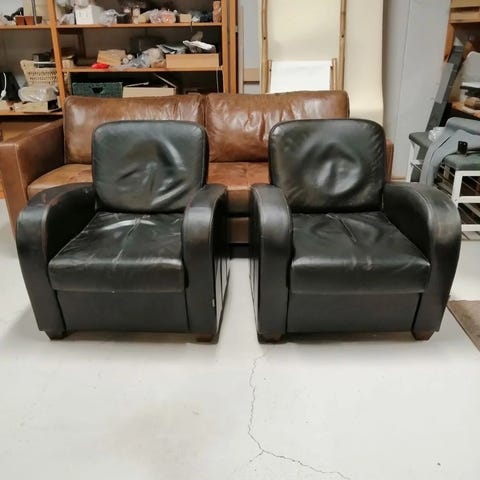 Nahkaa. Käsinojissa pieniä pisteenomaisia kulumia, jotka hädintuskin erottaa paljaalla silmällä.
