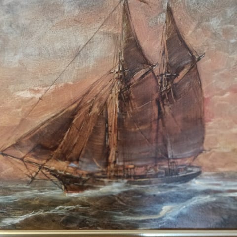 Vintage Laivataulu Kehystetty Mustavalkoinen