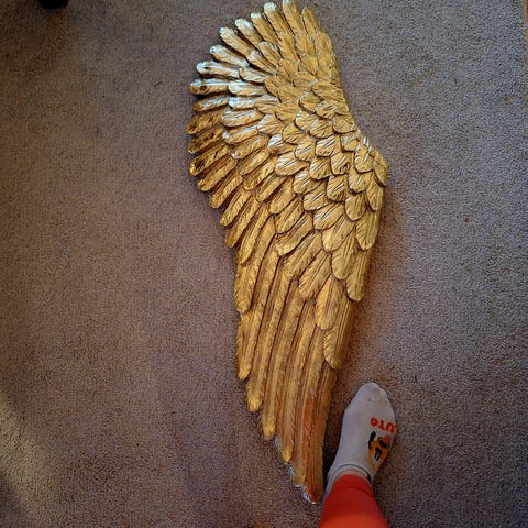 60cm korkeat, seinälle laitettavat siivet. Kehys metallia, sisus luonnonvalkoista pitsiä. Ostettu sisustusliikkeestä. Nouto Kokkolasta.