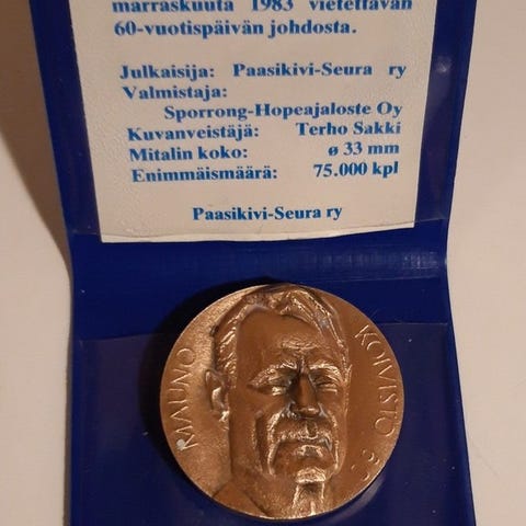 Paasikivi-seuran julkistama mitali. Asiallinen tarjous, kiitos. Postitus ok.