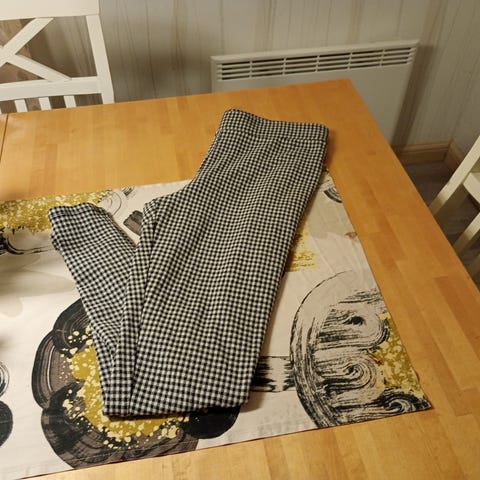 Mitat: Pituus 63 cm vyötäröltä lahkeeseen, vyötärö mitta 80 cm. Joustaa hiukan. Vastaa hyvin kokoa