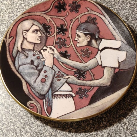 Arabia, Akseli Gallen-Kallela, "Kullervon sotaanlähtö" Kalevala nro 1 seinälautanen, mittoja lautasen halkaisija n.22,5cm