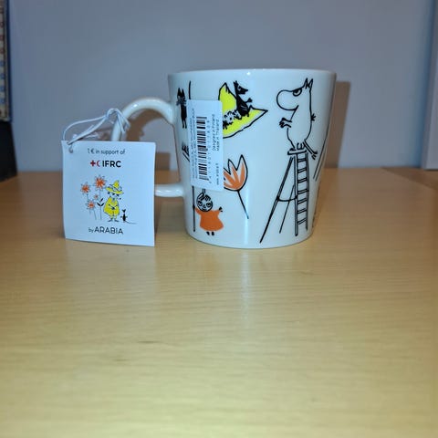 Myydään uusi Arabian ABC Muumipeikko muki 0,3l. Nouto Espoo Juvanmalmi tai postitus ok.
