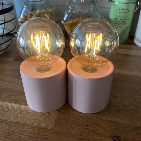 Yölamput. Lampunjalat hyväkuntoiset. Varjostimet uusittava. Toiseen tulee valo, toiseen ei.