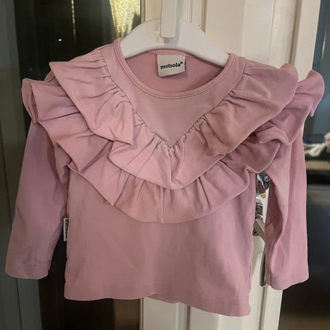 Metsolan paita frilla rinnuksella, Hearty kuosissa. Koko 86. Erittäin siisti kunto, ei mitään moitittavaa.