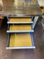 Varustettu kolmella vetolaatikolla, jotka tarjoavat säilytystilaa. Vetolaatikoiden lukko ei toimi. Soveltuu erinomaisesti työpajaan tai autotalliin.