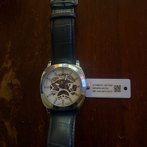 Siisti kuntoinen ja tosi vähän käytetty kello. Ei naarmuja lasissa ja nahka osakin siistikuntoinen jopa takapuolelta eli ei paljon uudelle häpeä.