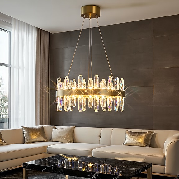 Kristallikruunu toimitetaan valmiiksi koottuna ja kristallit valmiiksi kiinni, vain uloimmat kristallit ovat erikseen.