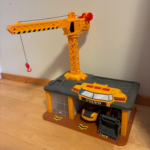 Yläosan "parking station" -kyltti hajonnut ja kadonnut leikin tiimellyksessä.