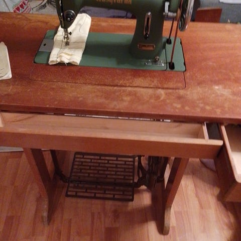 Husqvarna-ompelukoneen tarvikelaatikko. En ole ihan varma mihin malliin sopii tarkalleen, näyttää Vanessa-sarjan, 5000-sarjan tai 3600.. tms.