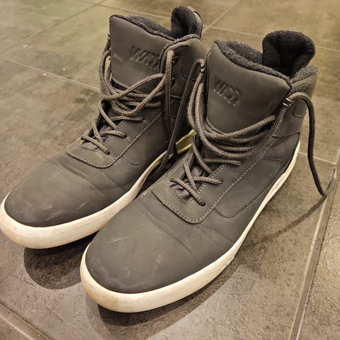 Vettä hylkivät warp merkkiset kengät. Kerran kokeiltu jalkaan ja ei ollu itselle sopivat.