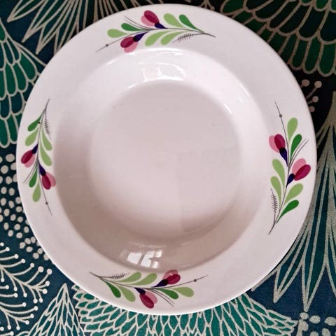 Arabian Hely-sarjan lautanen 5 kpl ja pieni kulho. Kaikissa jotain sanomista, pala pois tai karkea.