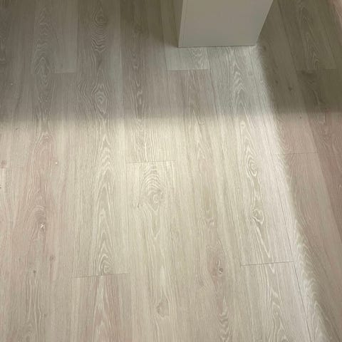 Myyntiin täältä hommattu Pergo kalanruotovinyyli lattia, joka ei tullutkaan käyttöön suunnitelman muutoksen vuoksi.