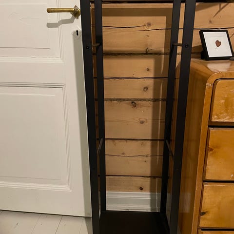 Tyylikäs mustaksi maalattu metallinen teline polttopuille. Korkeus 56cm, pohja 32cm. Avoimet päädyt niin mahtuu pisimmätkin puut. Puisesta leveästä kahvasta on mukava kantaa.