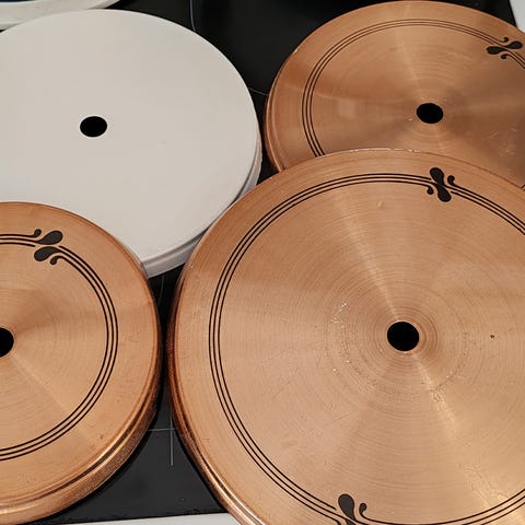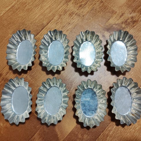 Vanhat emaliset liesisuojat. 1 kpl x 26cm, 2 kpl x 22cm.
