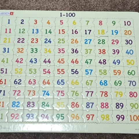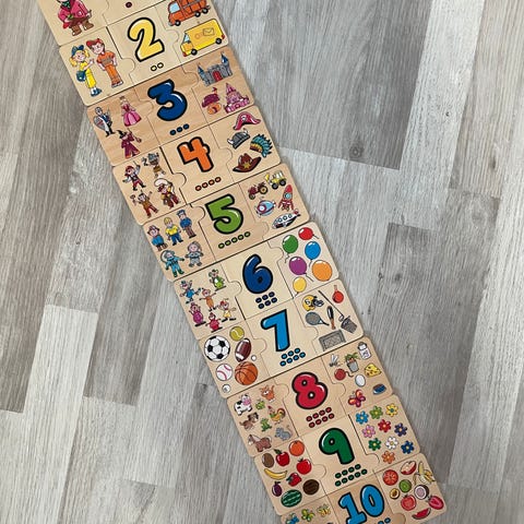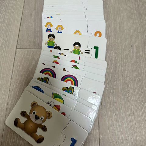 Valmistettu pahvista, hyvässä kunnossa, sopii englanninkielisten numeroiden ja lasten käsien hienomotoristen taitojen oppimiseen.
