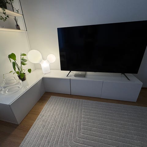 Myyntiin tulossa myös Bestå tv-taso jonka mitat 180x40x38cm. Tason päällä ollut aina lasilevy. Tasossa kaksi laatikkoa ja yksi kaappi. Kunto hyvä. Tv-tason hinta 80€.