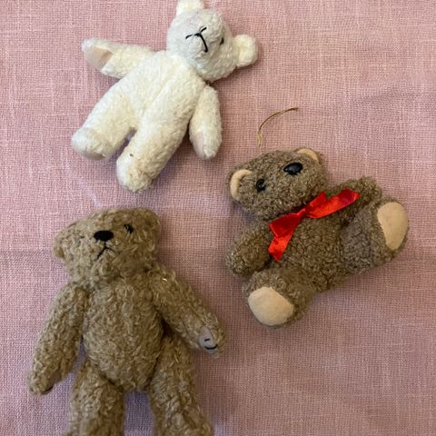 pehmoleluilla ei ole lainkaan leikitty vaan ne ovat olleet koristeina vitriinissä,