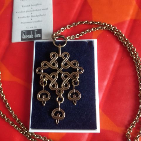 Kalevala Karjalainen nauhapunos hopea kaulakoru 925 leimoilla. Ketjun pituus 42cm, riipus halkaisija 2cm. Uudenveroinen.