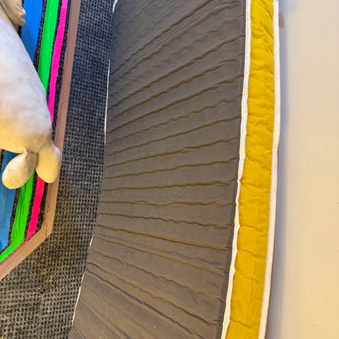 Pieni väritahra toisella puolella joka tullut tiukassa puristuksessa säilytettäessä ja ottanut väriä toisesta kirjavasta vaatteesta, ei siis mikään 'buuppi- tai piippiläikkä'.