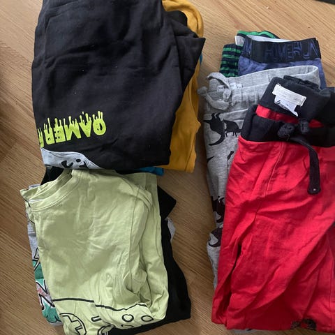 Iso vaatepaketti pojalle. Mm 7 shortsit, paljon T-paitoja, collegepaitoja, neuleita. Mukana myös urheiluvaatteita, uimahousut, ohut Reiman takki ja kerrasto. Kaikki vaatteet olleet käytössä yhdellä lapsella. Vaatteet ovat pääsääntöisesti hyvässä käytetyssä kunnossa, osa uuden veroisia. Jokaista vaatetta ei ole syynätty erikseen, joten jotain pientä vikaa voi löytyä, mutta se on huomioitu hinnassa. Vaatteita on n. 40 kappaletta, kaksi kassillista.
