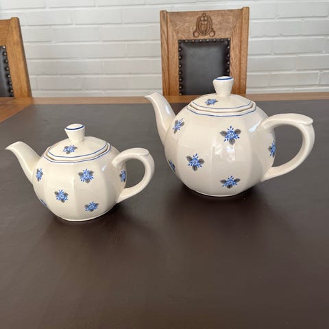 Myydään kaunis Arabia Sinikka -sarjan käsinmaalattu kahvi-/teekannu sekä 3 lautasta.