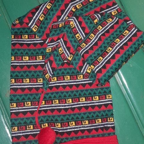 Nämä töppöset ovat mielestäni kauan sitten kuollut mummoni, jota en edes koskaan ehtinyt näkemään, kutonut tai sitten erään jo kuolleen sukulaisen entinen naisystävä kauan kauan sitten. Näissä töppösissä on niin retrot värit, että takuulla jollekin muullekin hyökyvät aikakauden värimaailmaat mieleen kertaheitolla 😂 Mutta että, minun jalkani on kokoa 38 ja nämä istuvat tiiviisti. Sanoisin, että jalkakokoon 37-38 ovat aika hyvät. Nämä ovat ehjät ja ikäisekseen hyväkuntoiset. Ei reikiä ja vain paikoin vähäistä nukkaa. Ennemmin siistit. Niin ovat mainiot tontun, metsänmenninkäisen tai muun mönkiäisen töppöset nämä, että.