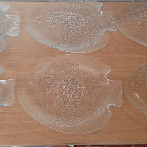 Myydään kuvanmukaiset vintage Arcoroc Fleur lasiset kalanmuotoiset lautaset, iso 39 x 32 cm, ja pieni n. 26 x 21 cm. Iso 10 euroa kpl, pieni 7 euroa.