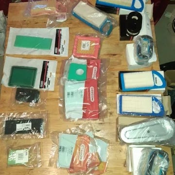 Kaasuvaijjereita raivuusahoihin, narupyöriä moottorisahoihin, ilmansuodattimia jne. Kaikki uusia. Koko läjä kerralla. Reilu tukkuhinta -50% myyntihinnasta on laskettu näille.