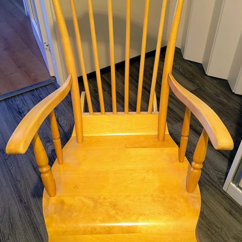 Kunnostettu kiikkutuoli, jalakset loimukoivua. Tukeva ja hyvä liikkua. Leveys 60 cm, korkeus 115 cm. Nouto Enosta tai kulkeutuu akselilla Eno Kontiolahti Lehmo Joensuu Kitee omien menojen mukana.