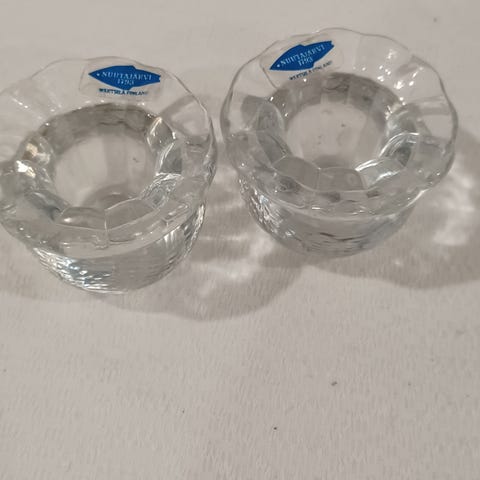 Nuutajärven Tähti-kynttilänjalka, 2 kpl. Korkeus 5 cm, leveys 7 cm. Vain nouto ja käteismaksu.