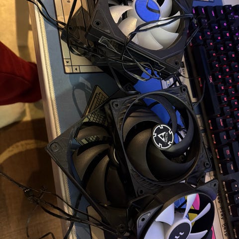 Käyttämättömät ARGB tuulettimet. Mukana tulee kontrolleri ja kaukosäädin