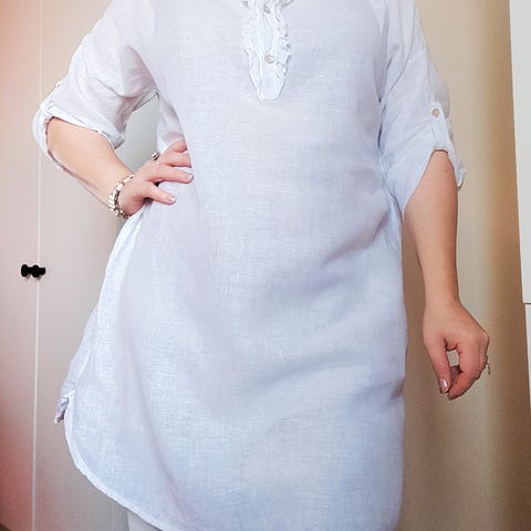 Pellava on materiaalina mahtava: se on antibakteerinen, kuumalla säällä viileä ja kylmällä lämmin, pehmeä ja kestävä luonnonkuitu. Pese nurin käännettynä lempeällä ohjelmalla, silitä nurjalta puolelta vaatteen ollessa kostea.