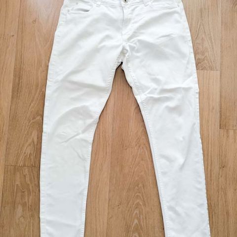 Puhtaanvalkoiset joustavat pari kertaa käytetyt hyväkuntoiset caprihousut. Ei kulumaa tai likaa. Koko noin XL. Materiaali enimmäkseen puuvillaa.