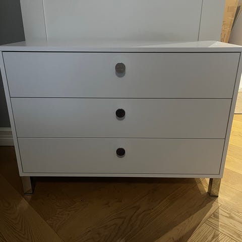 Myydään Askon Otso sarjaa oleva nelilaatikollinen lipasto ja moduuli ovikaappi.