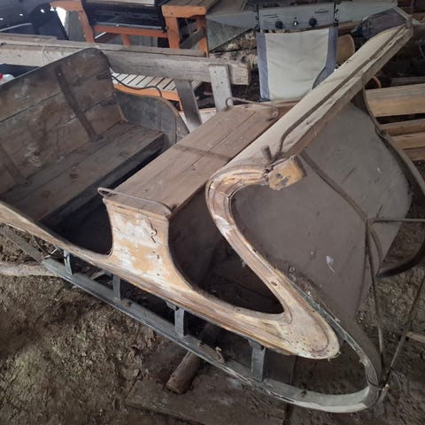 Ainakin 70 vuotta ladossa suojassa ollut vanha kirkkoreki. Ei lahonneita puuosia. Istuimen alla on säilytyslokerikko. Nyt pölyn peitossa. Pienellä fiksauksella/tuunauksella saatavissa näyttävä kirkkoreki.