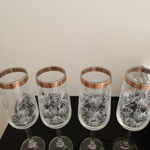 Kuvan mukaiset 4 kpl 22 cm korkeaa kuohuviinilasia.