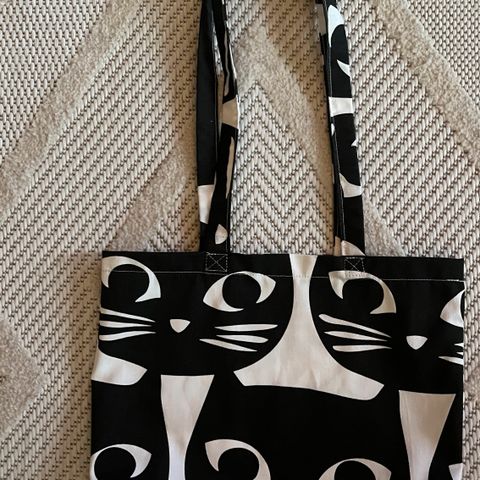 Uudesta puuvillakankaasta ommeltu kassi.
