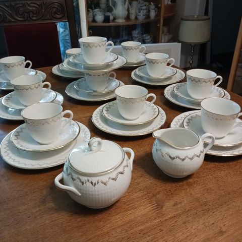 Rörstrand kahvikupit 8 kpl. Aluslautasia 8 kpl. Pullalautasia 6 kpl.