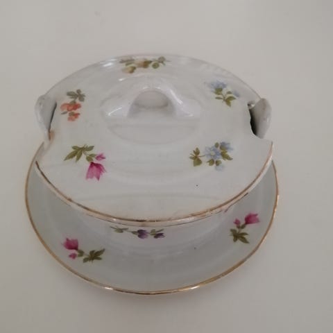 Halkaisija noin 13 cm ja korkeus noin 5 cm.