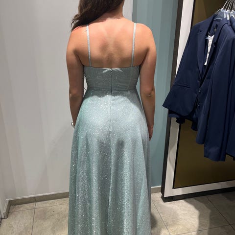 Ompelijan tekemä ruskean, kuparin ja keltaisen värinen linnanneito-tyyppinen mekko, jossa yläosa on irroitettava. Alla muhkeutta tuova alushame, johon on olemassa myös vanteet mutta ei ole käytössä kuvassa. Malli 167 cm pitkä, vyötärön ympärys 80 cm. Alushameen vyötärö on pienempi, mutta kiinnitysmekanismia saa muokattua. Mallilla aivan matalat kengät. Helmassa on jonkin verran pidennysvaraa. Helman päälikankaasta on teetetty olkapäille tuleva keeppi. Samaan pakettiin kuuluu myös kullanväriset pitkät sormikkaat ja pieni, mekon kankaasta tehty pussukka. Mielellään sovitus ja nouto.