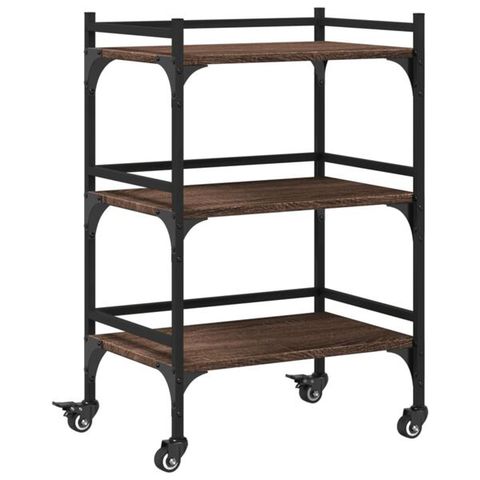 Runsaasti säilytystilaa: Tässä vihannesvaunussa on kaksi hyllyä ja yksi lokero, joihin mahtuu kulhoja ja astioita, mahdollistaen niiden helpon saatavuuden.